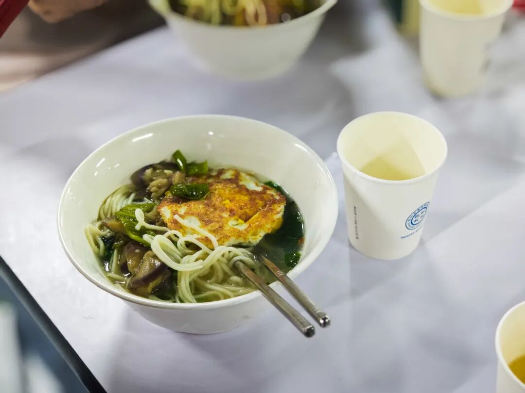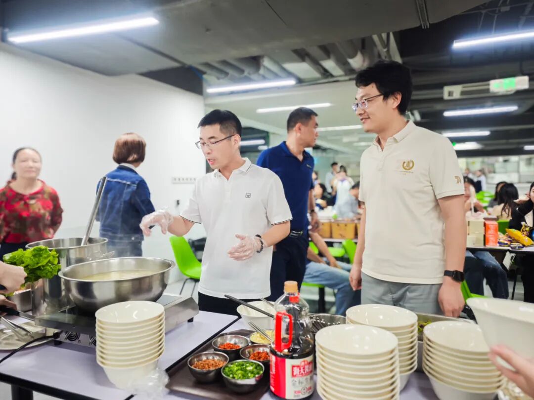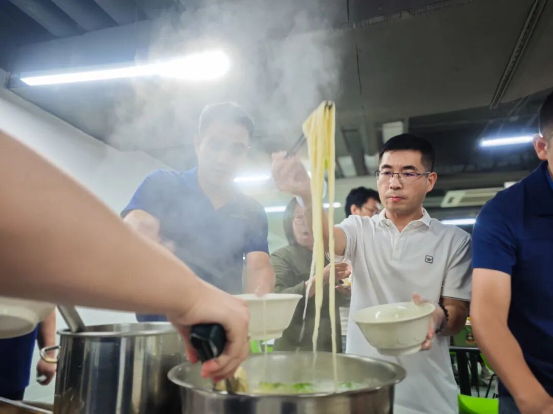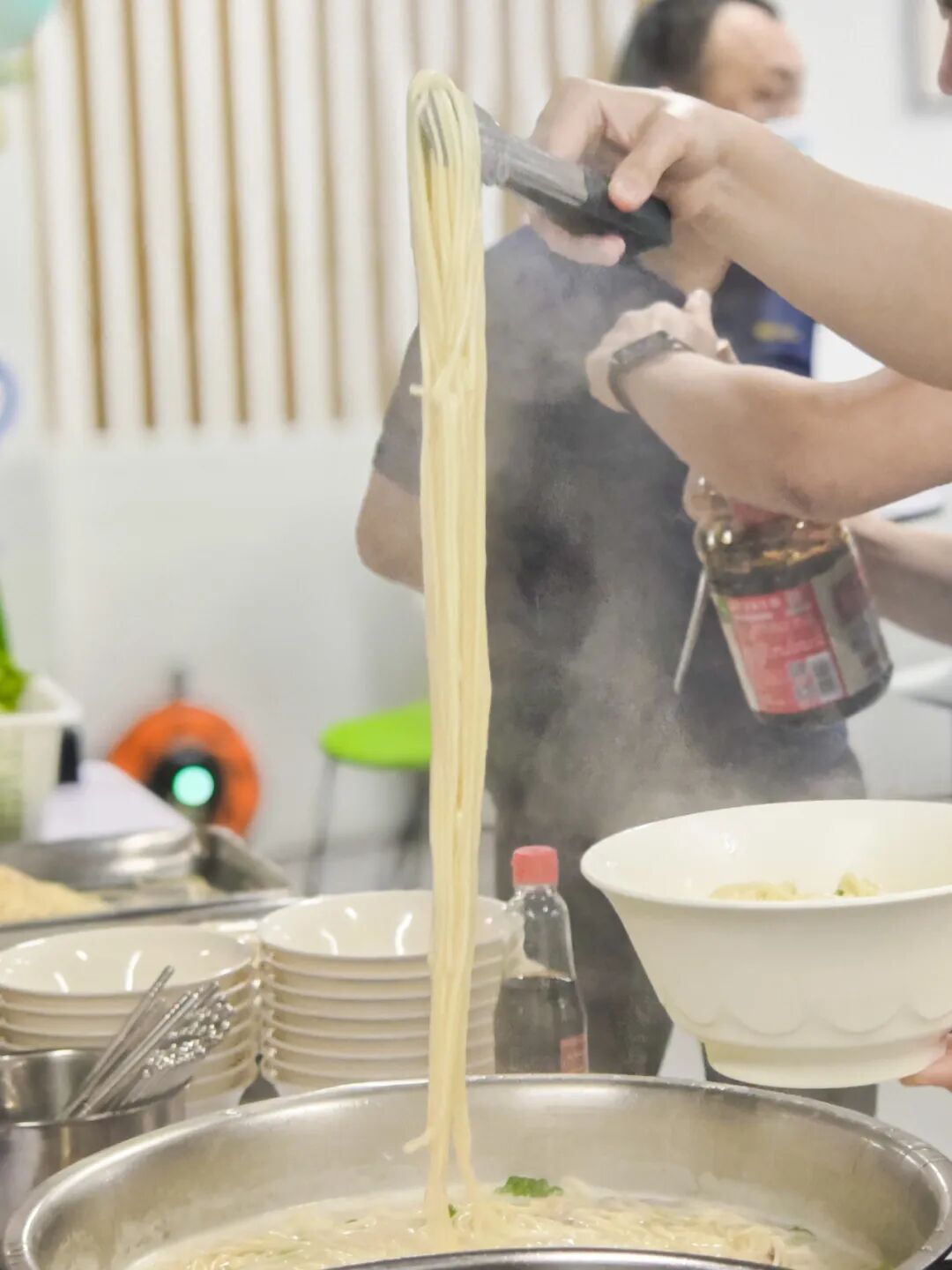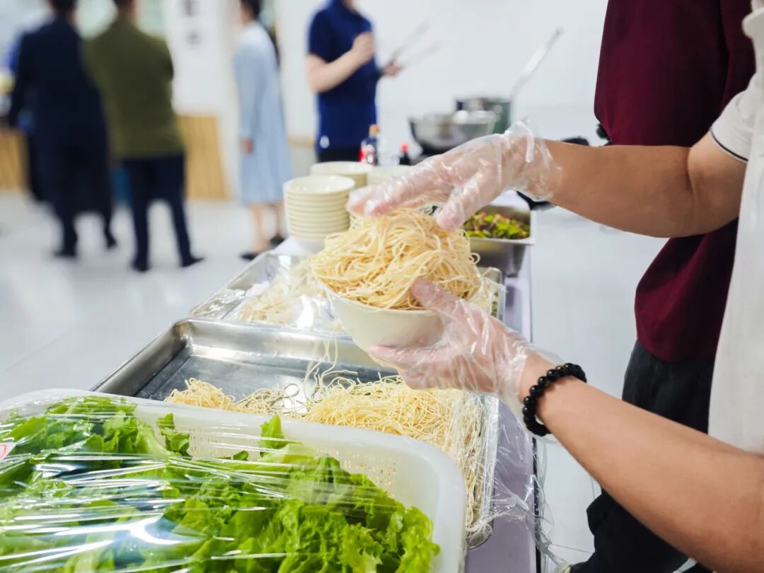 当一碗碗热气腾腾的面条递到手中,温暖便从指尖传到心间。品尝完蛋糕的老师们,迫不及待排起长队,只为邂逅那碗专属的温暖。“这碗面比家里的还香!”“在学校过集体生日太有意义了!”欢声笑语中,是对学校人文关怀的由衷赞许。