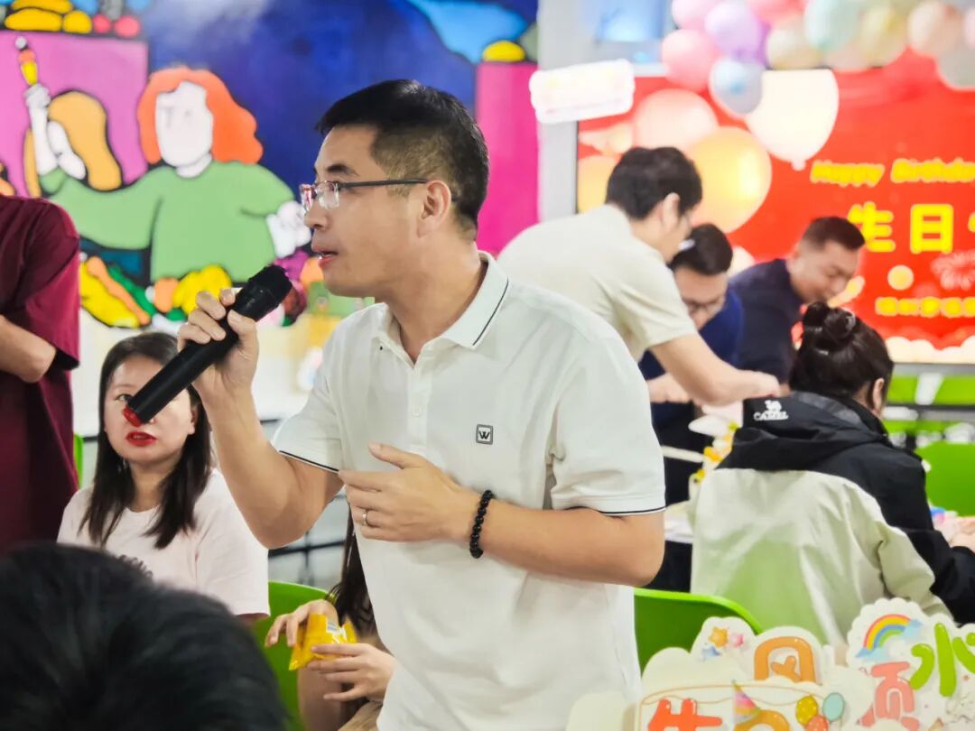 生日会伊始,第一书记刘洪代表党支部、校办与工会率先送上真挚祝福。“教育路上,感谢每一位汉开人的坚守与付出,愿大家桃李芬芳,更愿大家欢喜常伴。”朴实的话语里,是学校对教职工的深切关怀,瞬间让现场氛围愈发温馨。