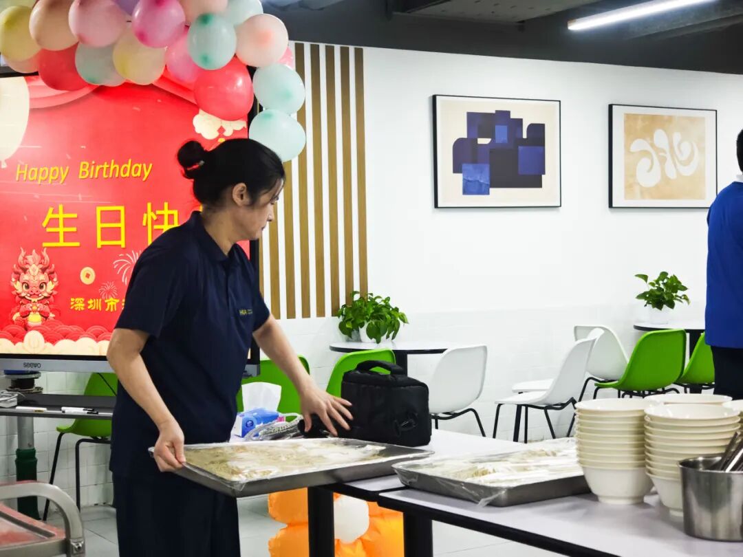 烟火气邂逅师生情,长寿面承载祝福意,深圳市汉开数理高中的食堂里暖意升腾。10月31日,三十余位教职工齐聚一堂,一场以“暖心长寿面,致敬引路人”为主题的集体生日会在此温情上演,每一处细节都藏着学校的用心,每一声欢笑都浸透着团队的暖意。