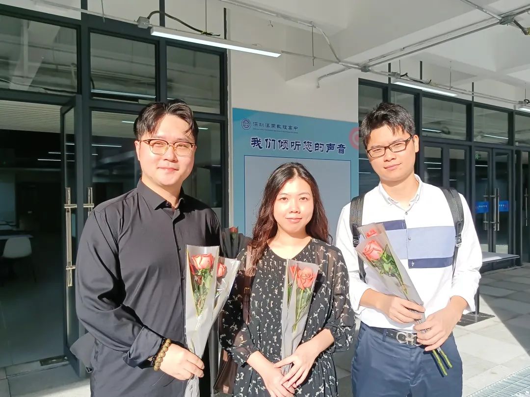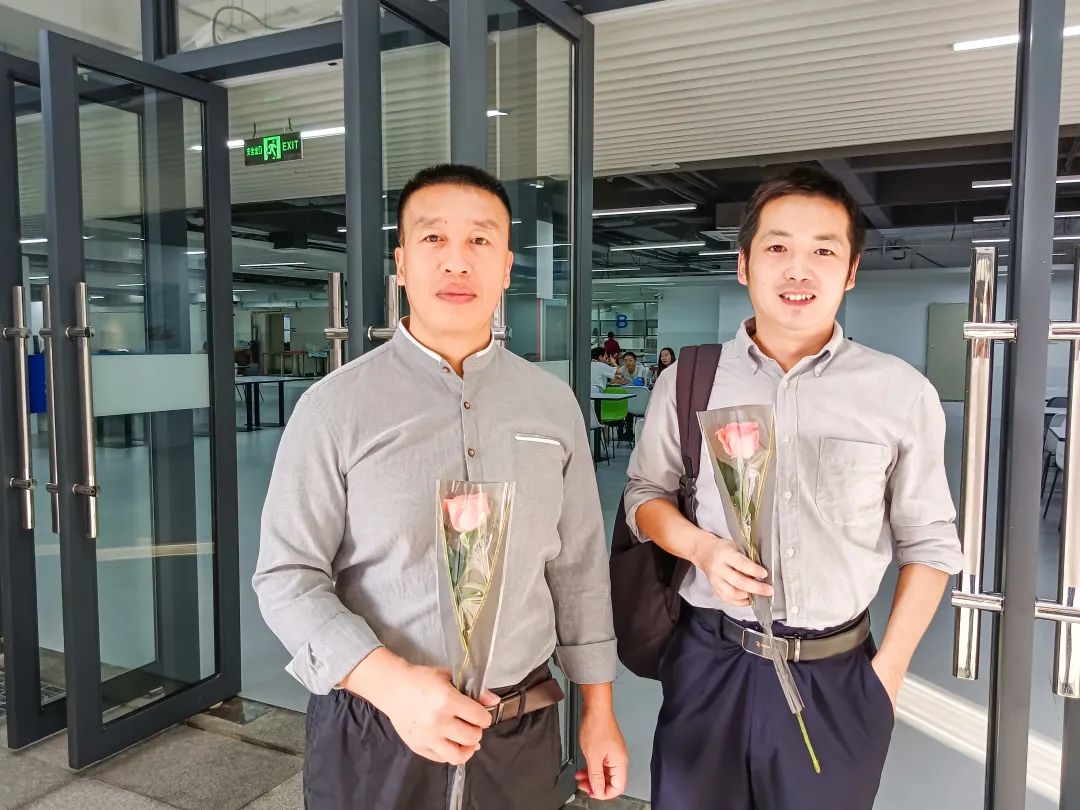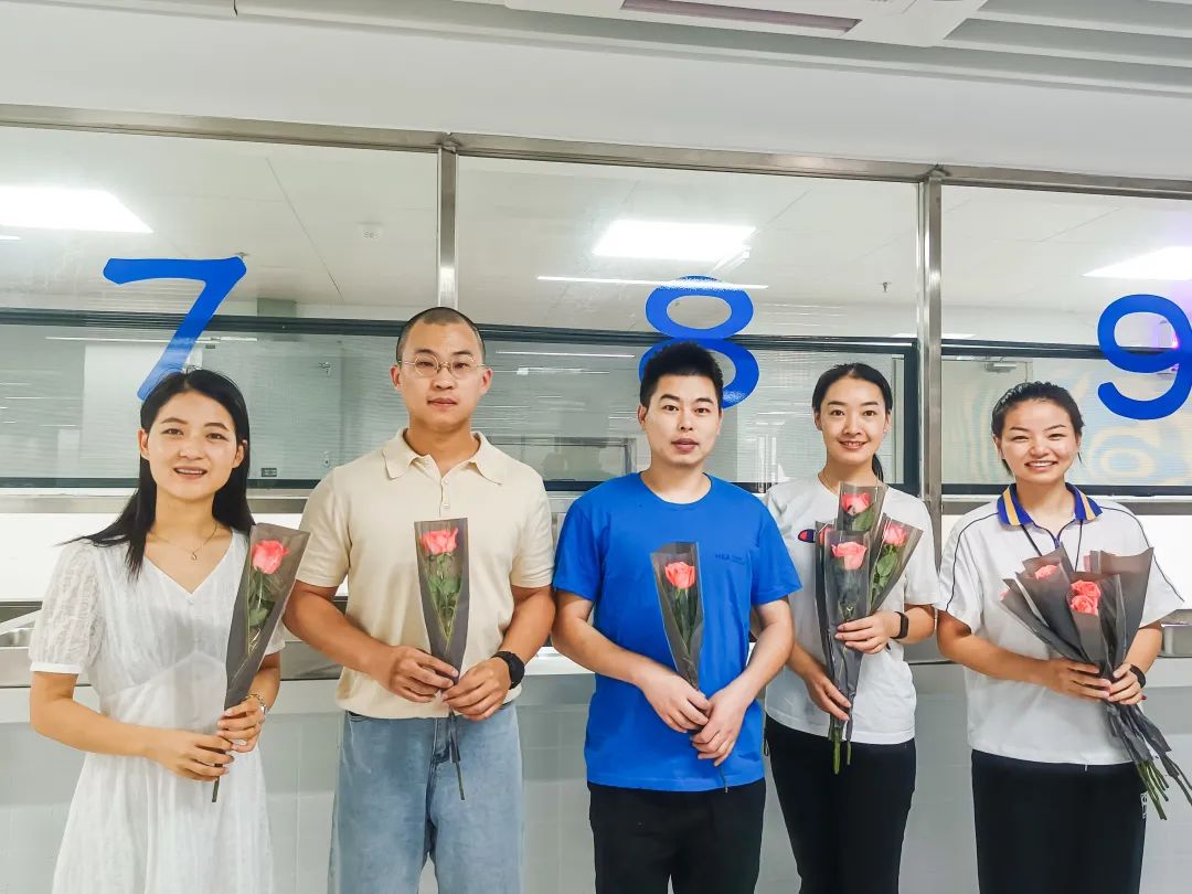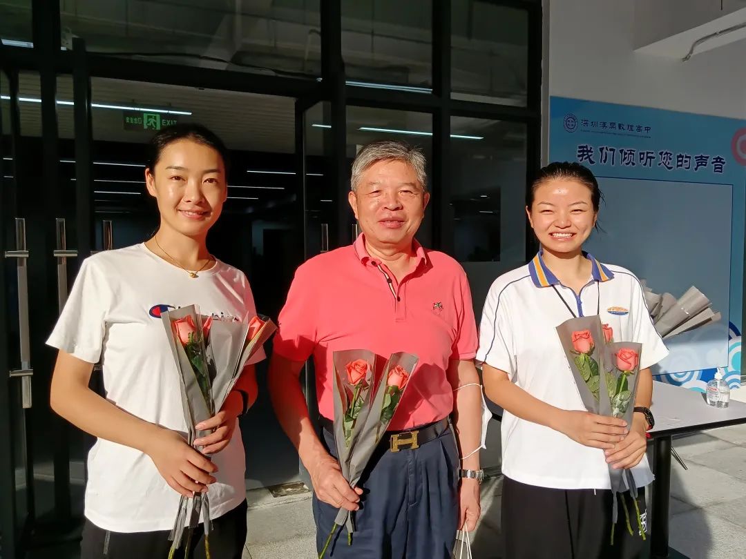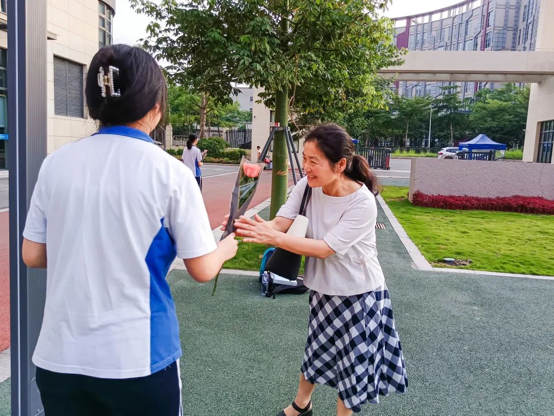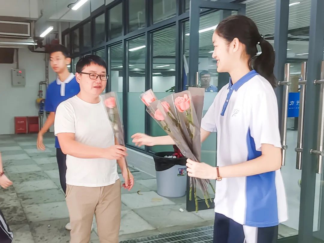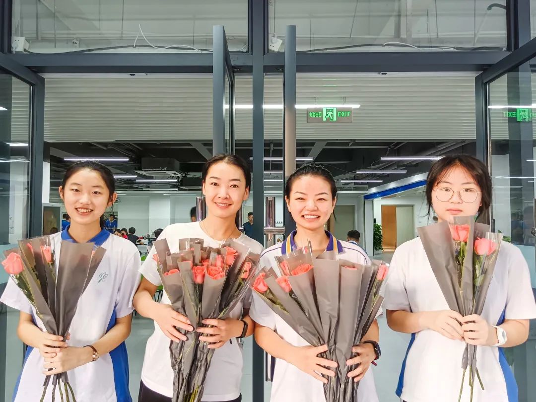 教师代表杨萌老师、黄美林老师、学生代表黄宝仪同学 、刘思宇同学为教师们献花