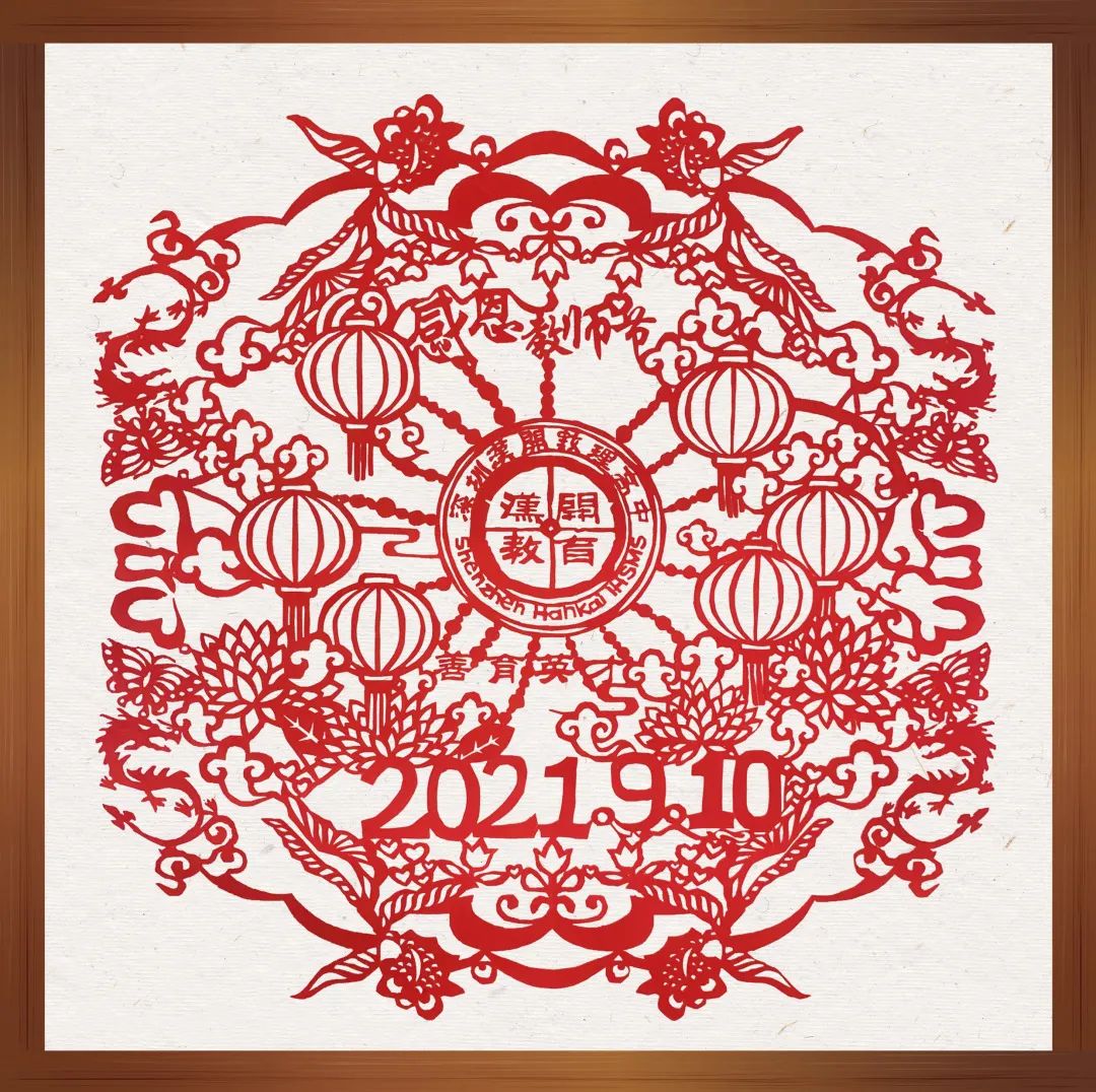 作品简介:该作品以窗花为主体背景,中心为深圳汉开的校徽:同心圆,结合龙纹、祥云、灯笼、瓦当、花卉等吉祥图案,突出“善育英才”的意义,用剪纸的形式展示“她从大汉走来,向世界盛开,教贯中西,学会理解,创造未来。”表达感恩教师节的含义,很荣幸能在深圳汉开数理高中与全国乃至世界各地的教师一起共同庆祝这重要的节日。