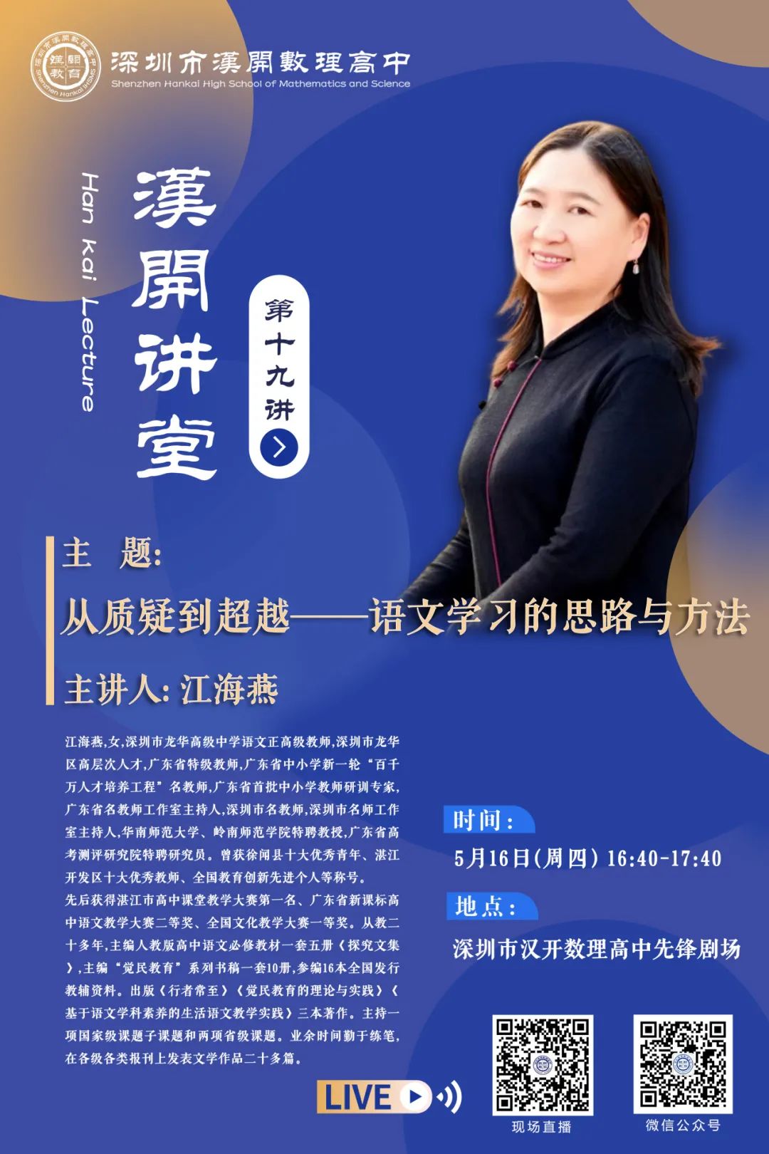 汉开讲堂,是深圳汉开数理高中拓宽学子视野、培养格局思维、激发兴趣进而形成志趣的课程。