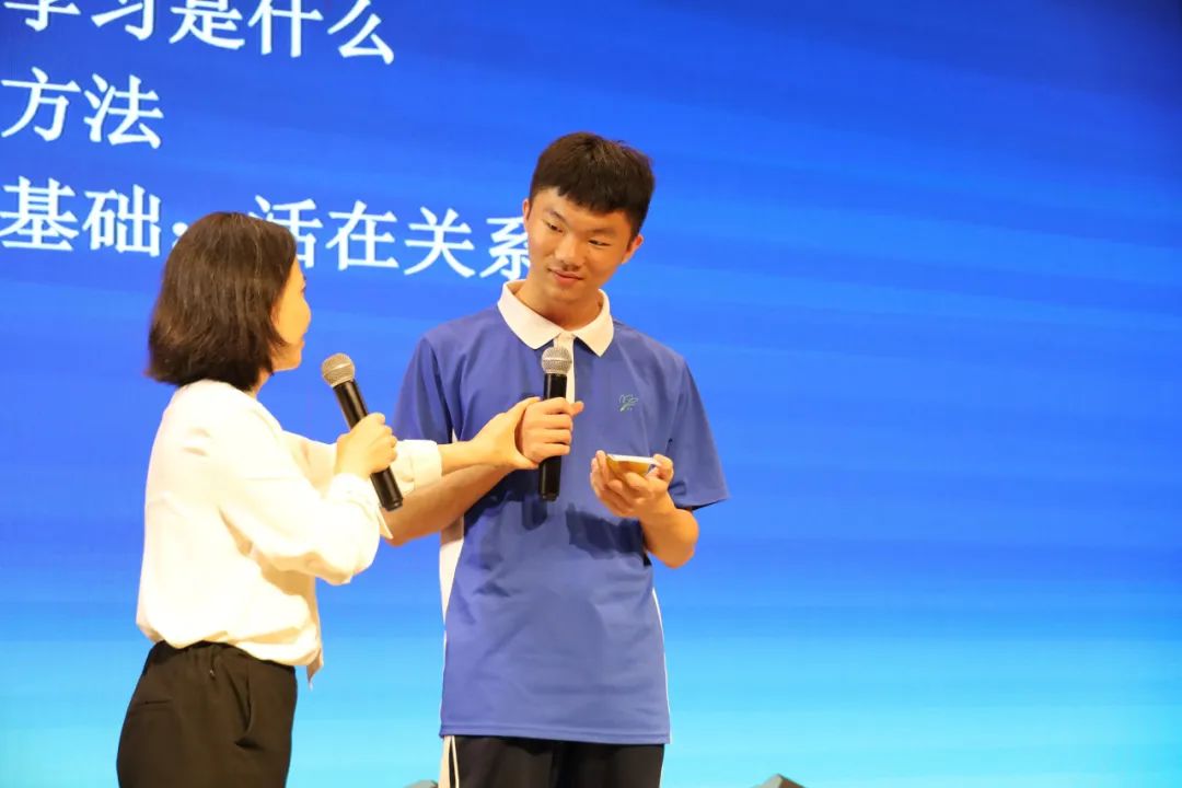 紧接着,范博士让现场师生两两组队,共同参与到心理互动“畅想未来”,思考自己未来真正想要的是什么,并邀请观众代表上台分享。大家在范博士的引导下,大胆阐述自己未来想要成为什么样的人以及实现规划,赢得了观众们的阵阵喝彩。