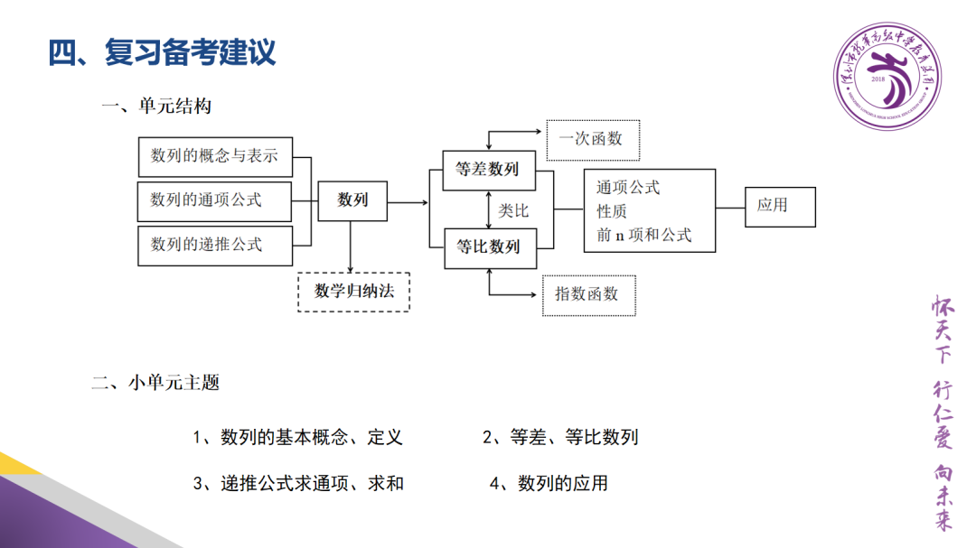 2.充分领悟数学知识和方法背后蕴含的数学思想方法。如几乎每个版块的都蕴含的数形结合思想,以及常见的函数与方程、分类讨论等数学思想,学会用数学思维思考世界,如遇到生活中求最值的问题,可联系函数的思想来构造,利用其单调性,加强解决问题的能力。
