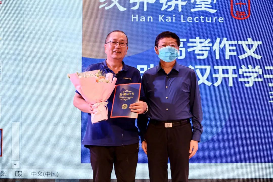 “今古河山无定据,天下文章有成规”王老师开篇用一句话点明了写文章是有规矩可循的,这让学生们兴趣顿起,思绪紧跟王老师步伐。紧接着,王老师结合多个生动的实例,从高考阅卷老师的议论文判分标准,学写议论文的重要性等为我们展示了议论文的几个核心内容,同时讲述立好议论文框架的标准:一是“三论”完整;二是层次分明;三是衔接自然;四是首尾呼应。从而得出结论:写议论文最重要的是你必须写一篇真正符合议论文特征要求且说理深入,内容丰满的议论文! 正当大家在疑惑怎样根据框架标准写好议论文的时候,王老师亮出了他独创的“八脉神剑”写作技巧。他先为同学们讲述“八脉神剑”的内涵;随后,他结合例子和“八脉神剑”3.0中“亮剑、起剑、舞剑、收剑”的要点,生动有趣地为大家阐述怎样在议论文的标题、开篇、段段、结尾中应用这些技巧。 王老师诙谐幽默的语言,抑扬顿挫的语调,精彩的授课内容,赢得现场师生阵阵掌声。大家听得全神贯注,认真做着笔记,生怕记漏一个知识点。 最后,教务部王主任代表学校,为王老师颁发校史馆“收藏证书”,这意味着王老师的讲座内容,已被收入“汉开作品典藏库”,作为学校永久藏品。 讲座结束时,现场学生纷纷表示,今天王老师的课堂内容很实用,让人受益匪浅。甚至还有众多小粉丝问能不能请王老师多给大家讲几堂课。