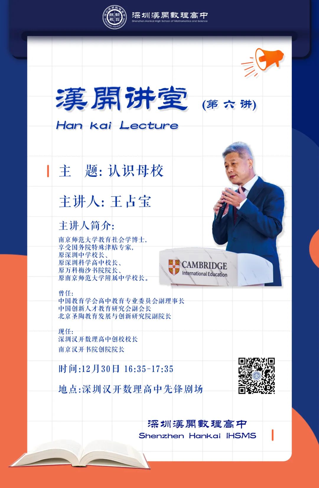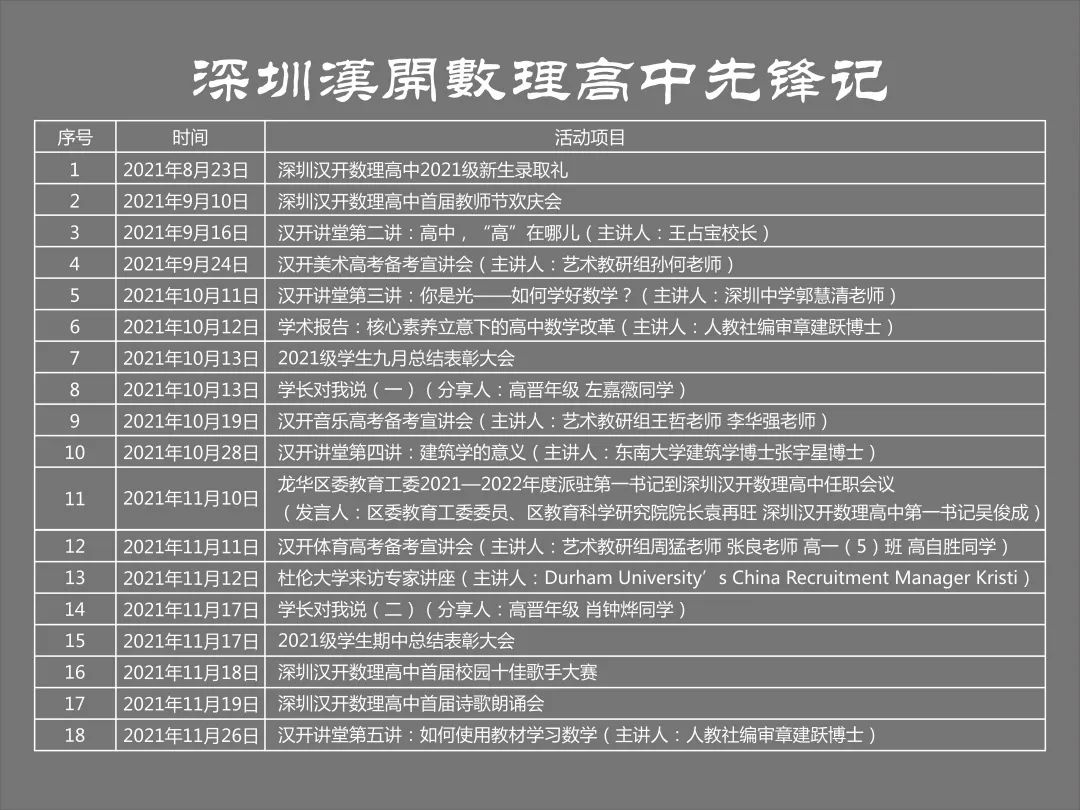 近日,王占宝校长以《认识母校——深圳汉开数理高中》为题,向全体师生介绍我们的校园。校长温厚的话语在先锋剧场中回荡,流入同学们的心里,激荡出奋进的力量。