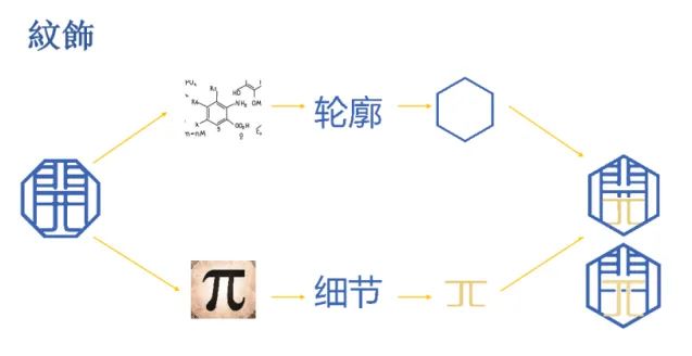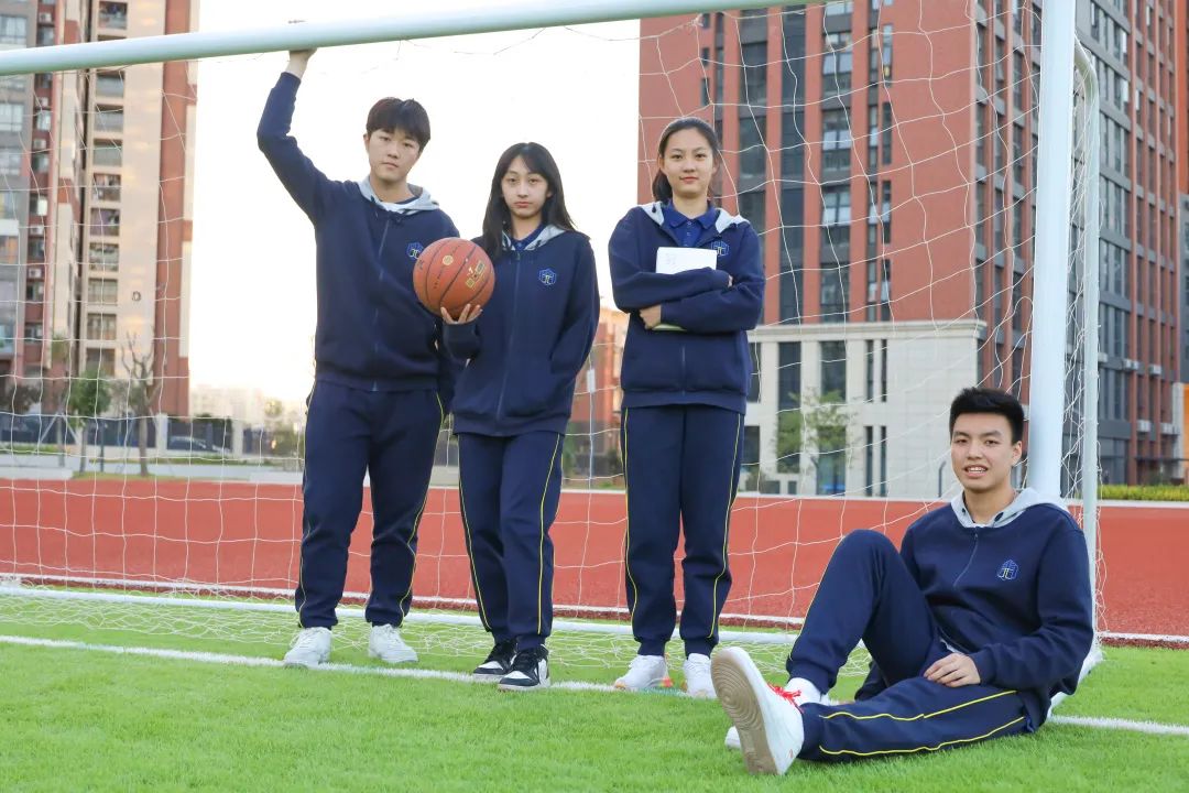 校服的纹饰设计在南京汉开纹饰的基础上,加入数学元素“π”与与其他理科元素组合,突出数理特色。