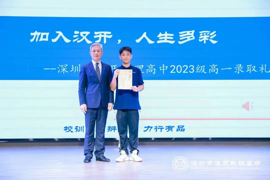 王占宝校长为新生们颁发录取通知书。季节轮换,新的故事开启,值得期待。经过反复的奋斗与抉择,命运使一群可爱活泼的面孔齐聚汉开,那些曾经努力的光,在这一刻有了答案,愿学子们记住今天,不止于前,不止于此。