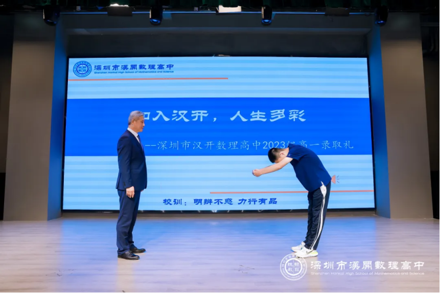 师者,所以传道授业解惑也,深圳市汉开数理高中在新生录取礼上举行庄严的传统录取礼,老师带领同学们行拜师礼。
