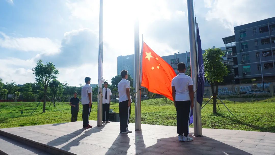 童子军开营的第一项仪式,全体师生奏国歌、升国旗、行注目礼。《义勇军进行曲》激荡的旋律骤而响起,五星红旗随风飘扬。