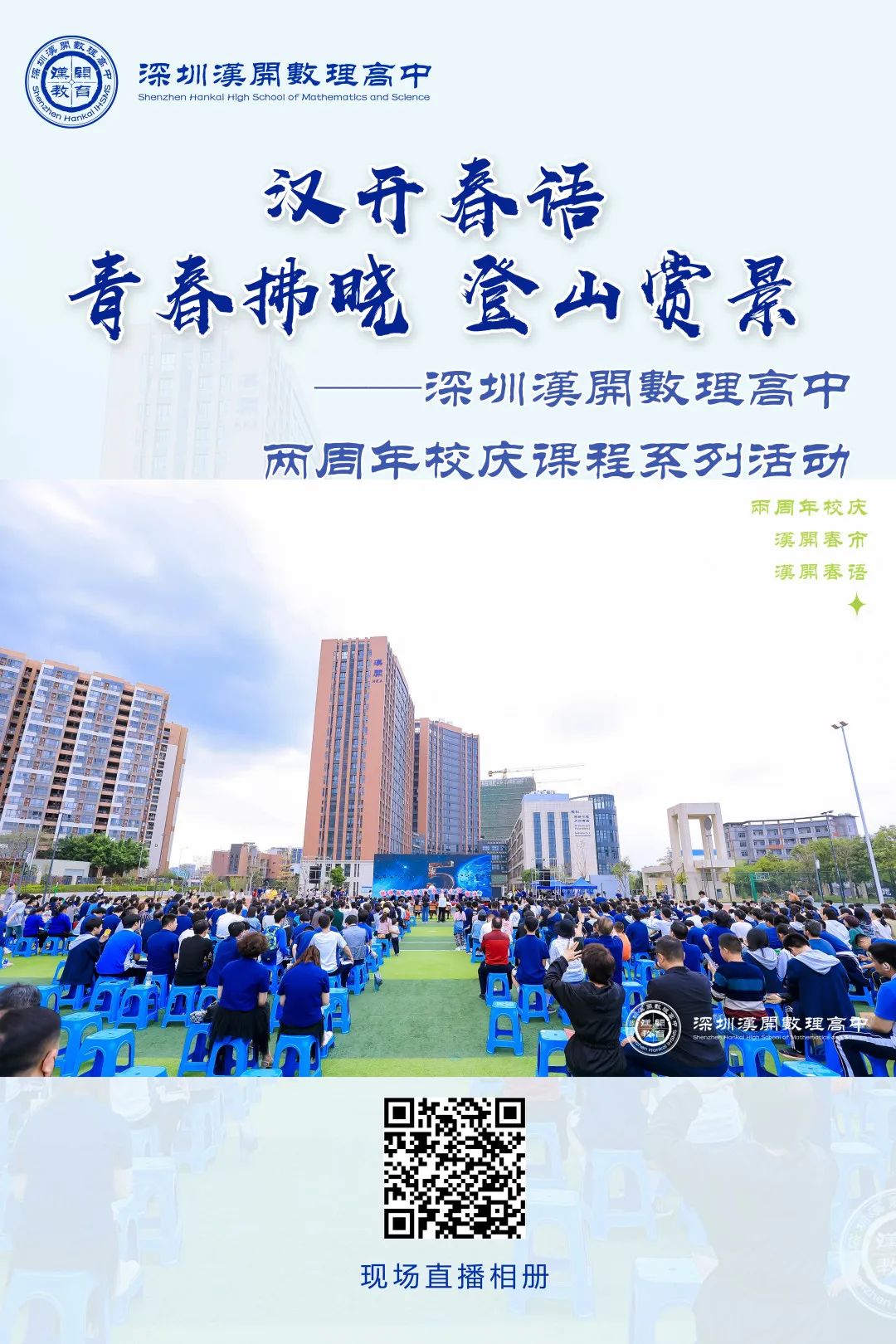 2023年3月11日,汉开数理高中校庆课程系列活动之青春拂晓,登山赏景——“汉开春语”义演活动在运风场举办。