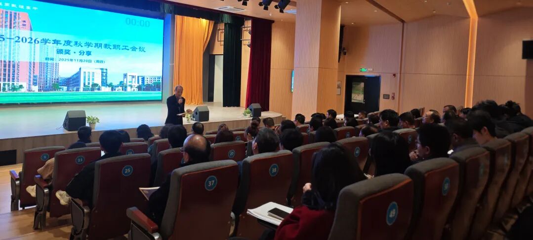 2025年11月20日,深圳市汉开数理高中 2025-2026学年度秋学期教职工会议如期召开。本次会议延续往期“颁奖・分享”的核心主题,表彰先进典型,分享教学智慧。