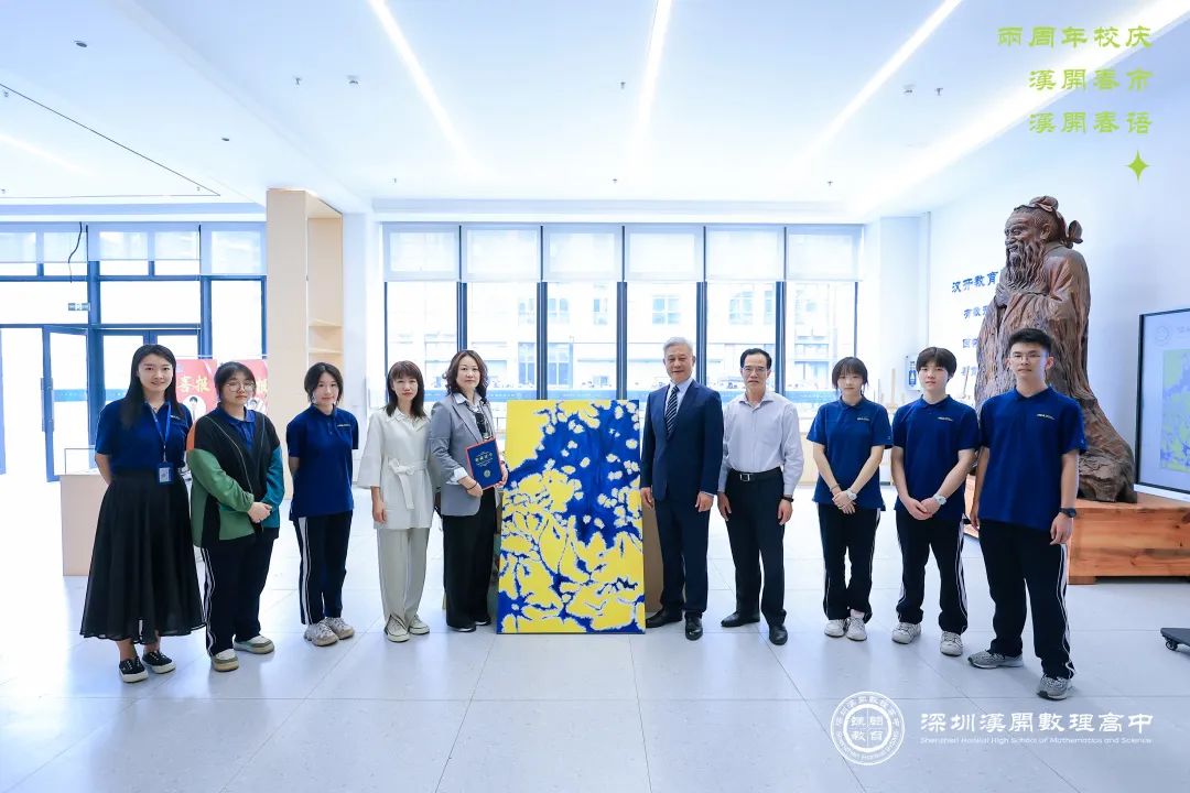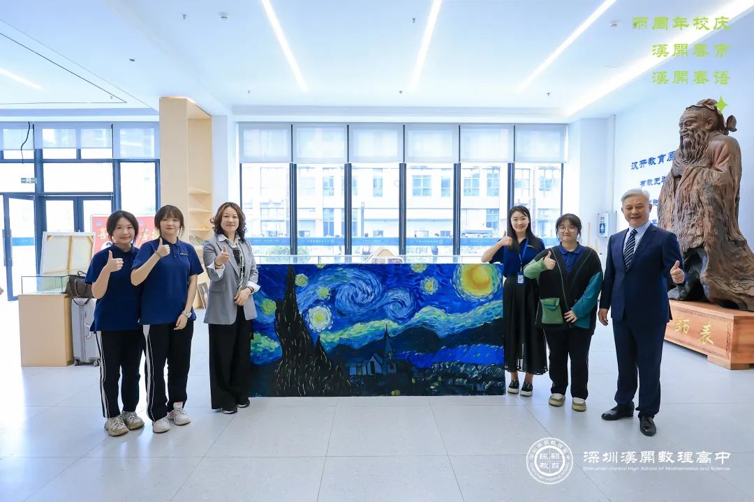 △ 郑女士、王占宝校长与深圳汉开数理高中美术教师、美术特长生合影留念