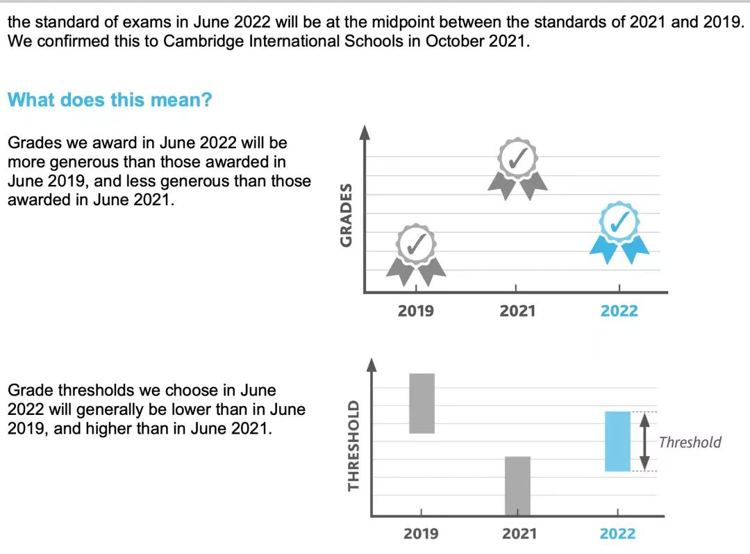 剑桥大学国际考评部2022全球夏季大考成绩总体下调,与过去三年相比,其标准设定在2019年(疫情前)和2021年之间。