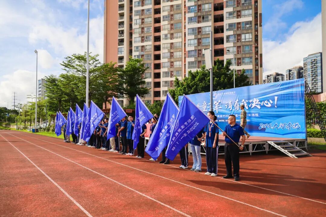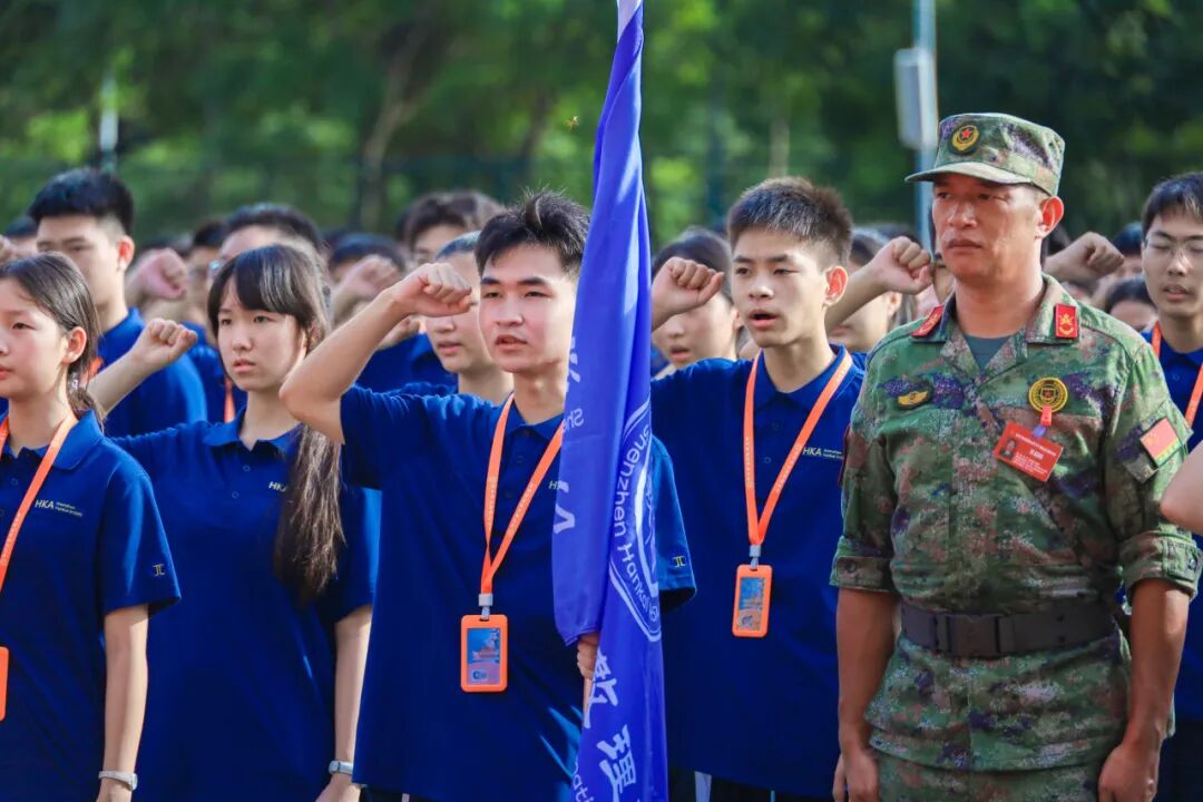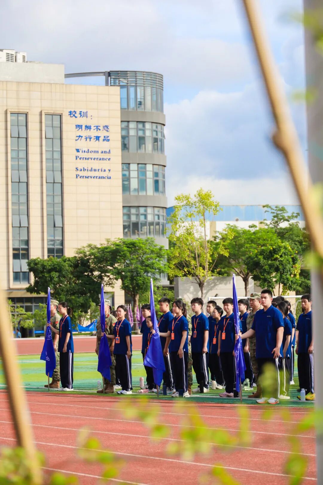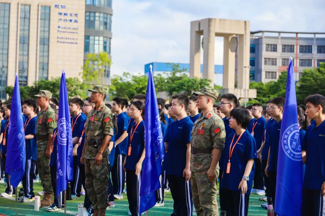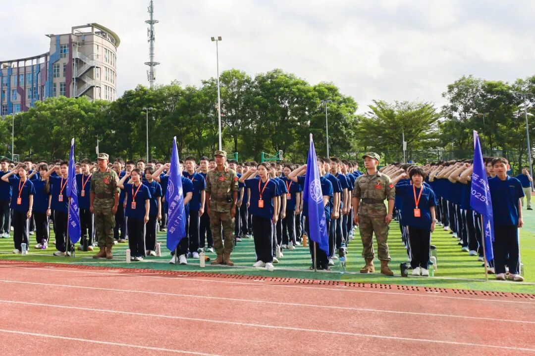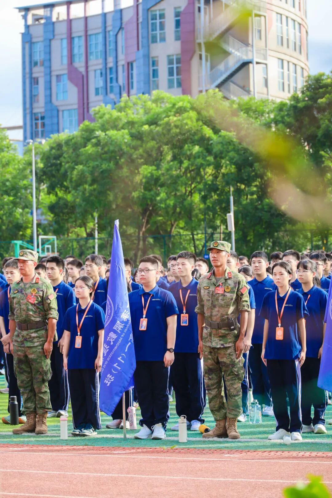 8月31日上午8时,深圳市汉开数理高中 2025级高一新生正式到校首日,校园操场旗帜飘扬——为期7天的童子军课程(军事训练)正式拉开帷幕。烈日之下,高一新生整齐列队,用“眼睛更亮、声音更响、腰杆更直、胆子更大、两臂更有力、双脚更坚定”的精气神,宣告青春与意志的第一次淬火。 开营仪式由张老师主持。学校行政领导与承担本次训练的教官团队一同出席。面对33 ℃的高温与直射的阳光,同学们始终昂首挺胸、目光坚毅,充分展现了“汉开学子”的青春活力与责任担当。