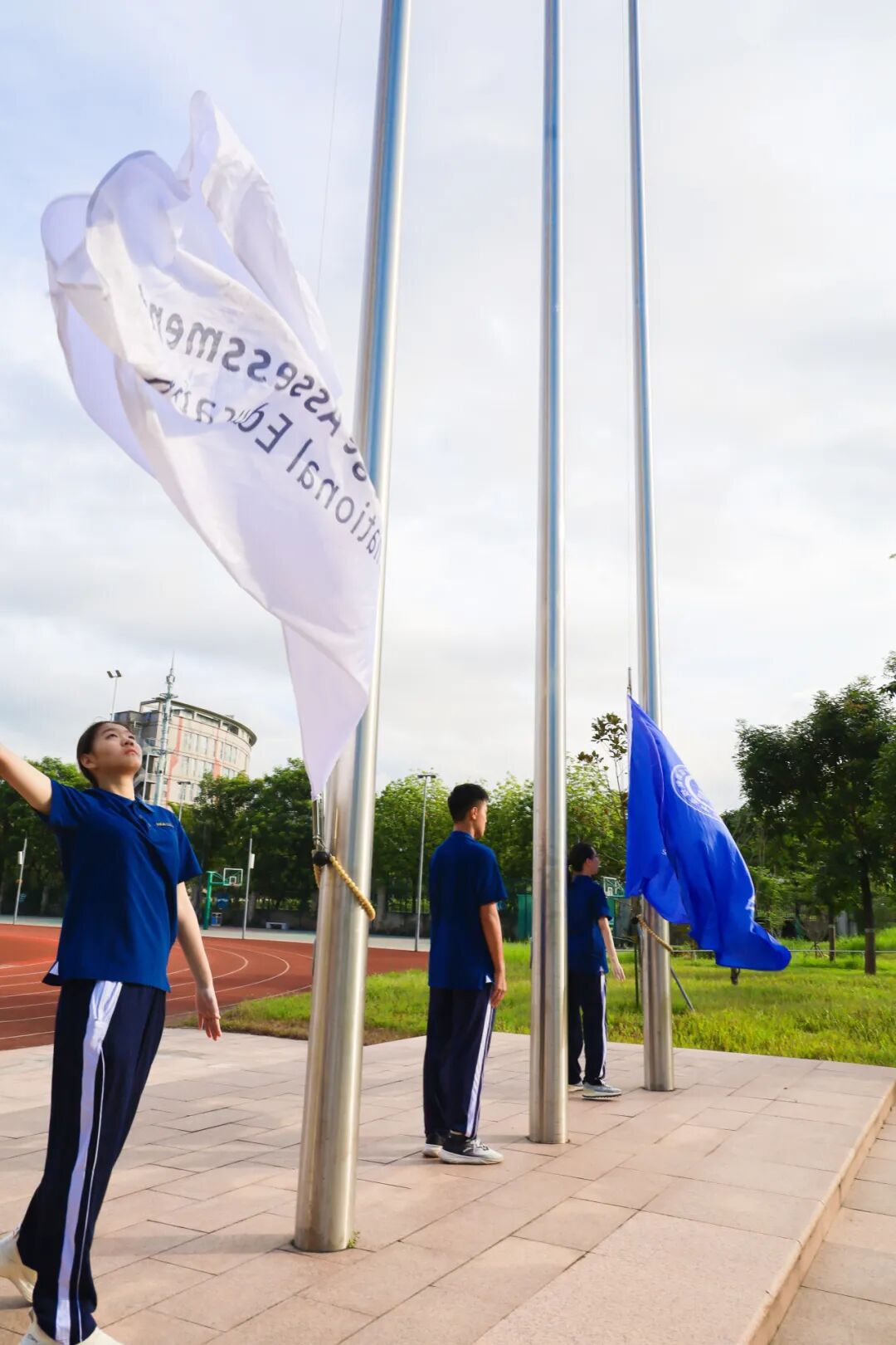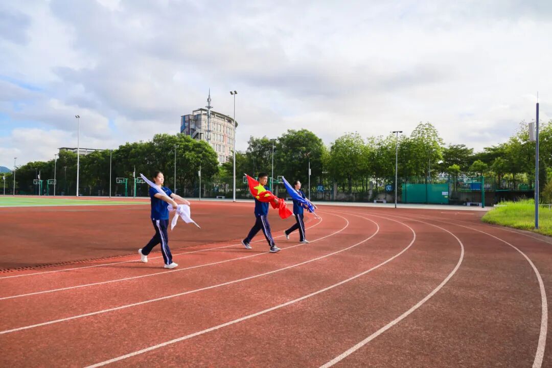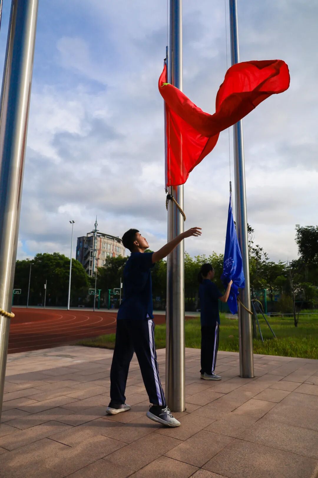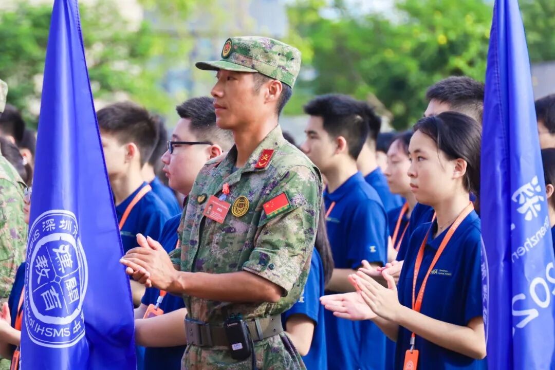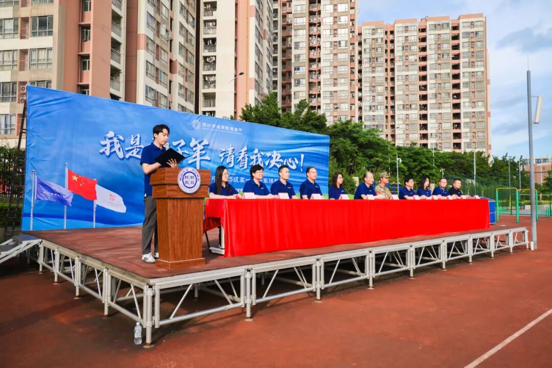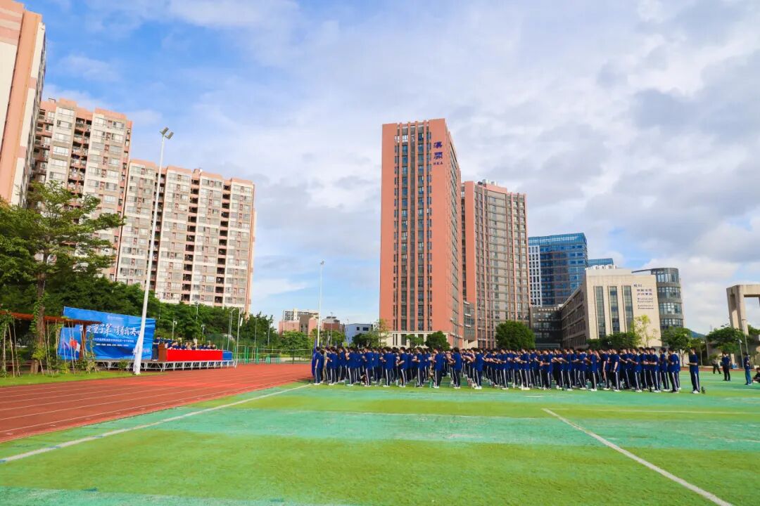 8月31日上午8时,深圳市汉开数理高中 2025级高一新生正式到校首日,校园操场旗帜飘扬——为期7天的童子军课程(军事训练)正式拉开帷幕。烈日之下,高一新生整齐列队,用“眼睛更亮、声音更响、腰杆更直、胆子更大、两臂更有力、双脚更坚定”的精气神,宣告青春与意志的第一次淬火。 开营仪式由张老师主持。学校行政领导与承担本次训练的教官团队一同出席。面对33 ℃的高温与直射的阳光,同学们始终昂首挺胸、目光坚毅,充分展现了“汉开学子”的青春活力与责任担当。