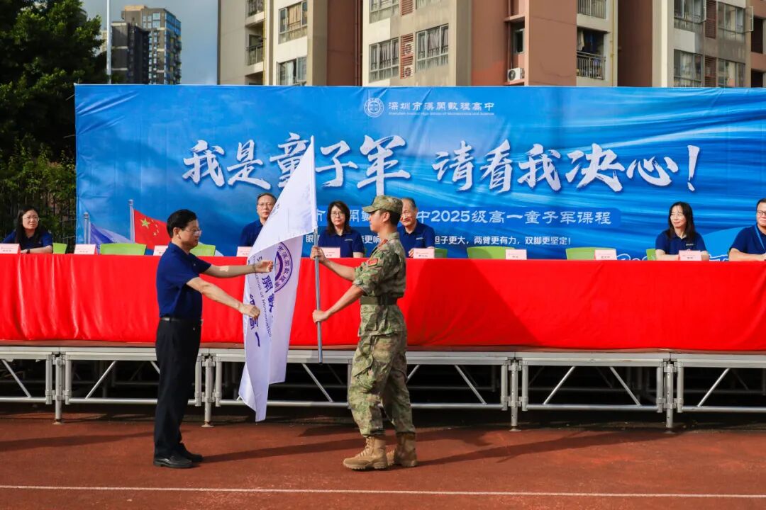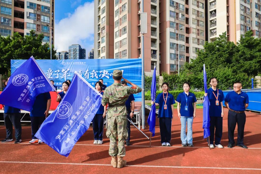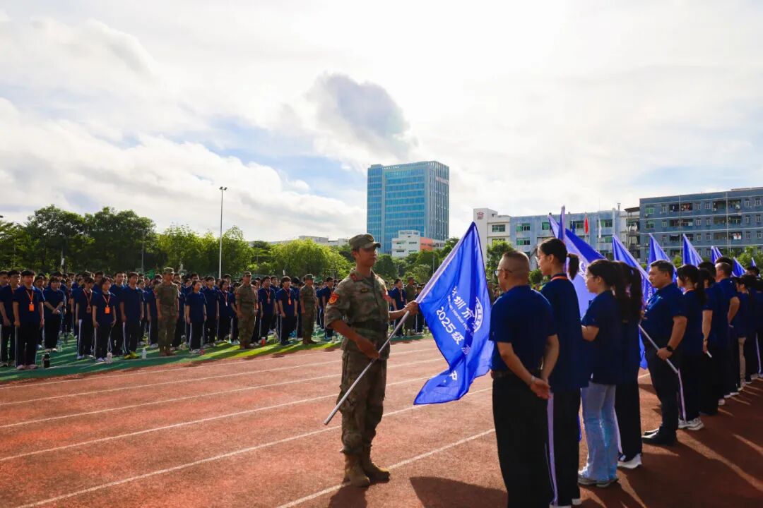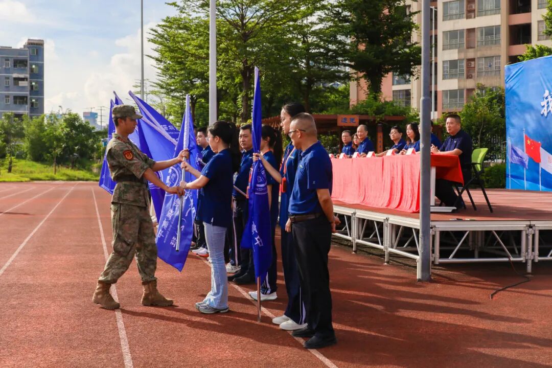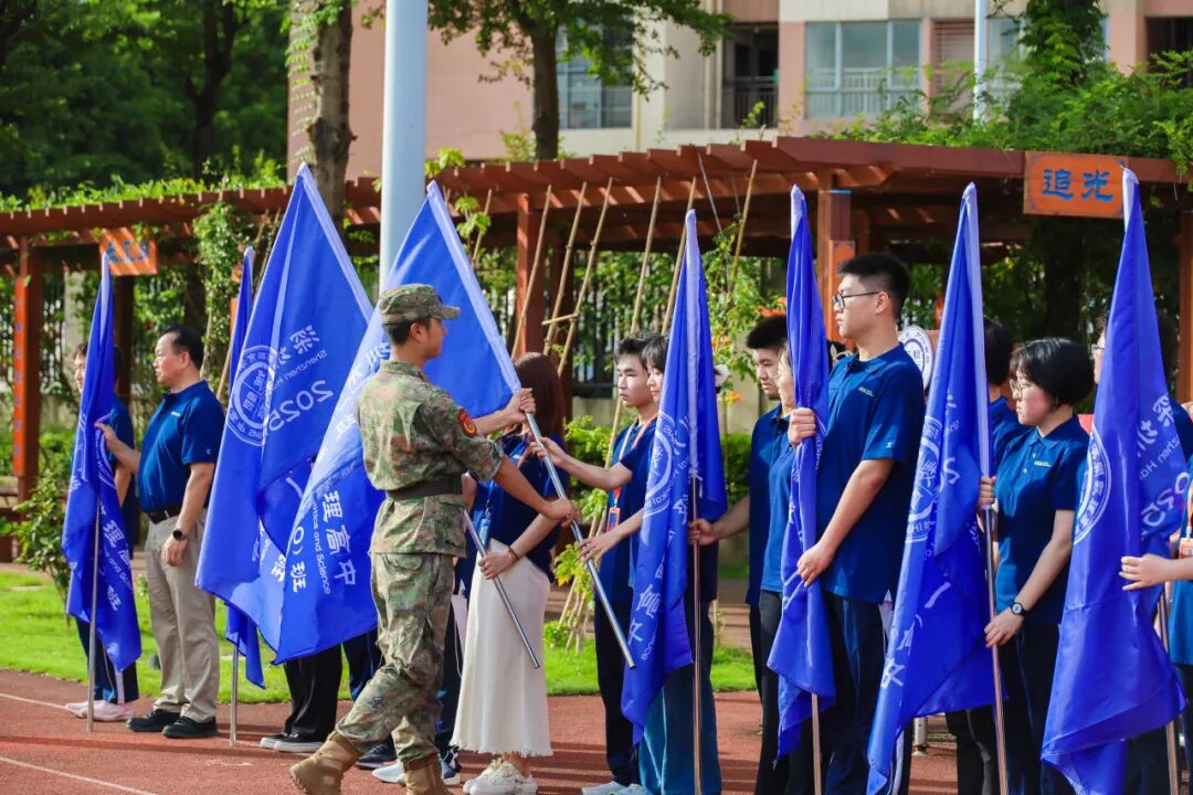 校长助理王老师为总教官授旗,随后由总教官为各班授旗,各班班主任上台接旗!一面面旗帜,承载着责任与使命;一声声誓言,凝聚着勇气与力量。