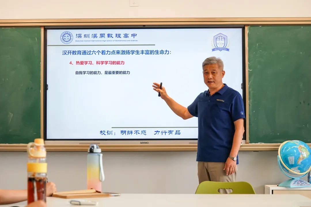 8月5日,深圳汉开数理高中国际部召开新教师培训会,王校长作了题为《在国际教育中如何培养孩子丰富的生命力》的演讲,介绍了汉开国际教育的六个着力点,分别是: