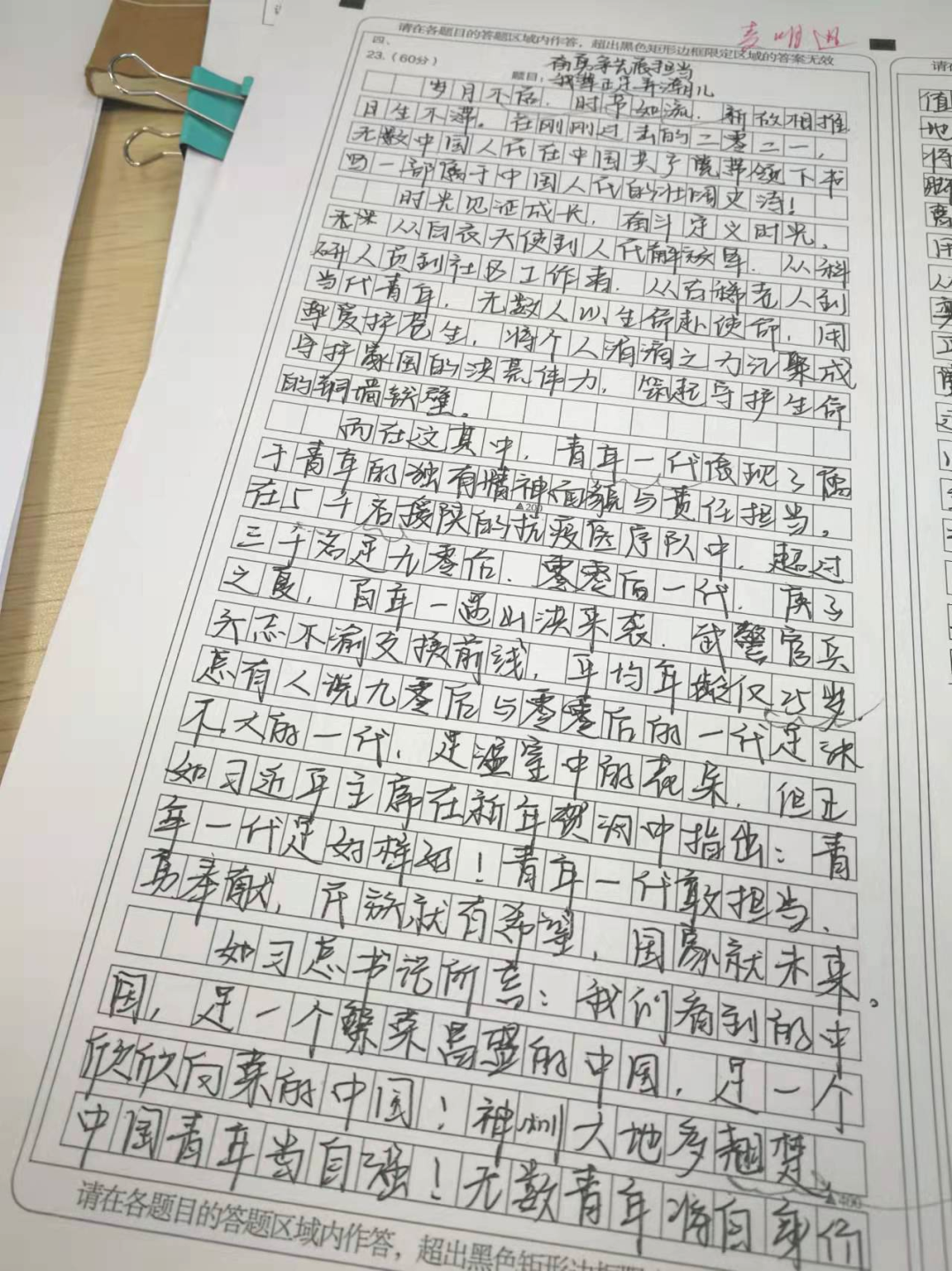 读了以上材料,你有何思考和感悟?请写一篇发言稿,在本班班会上发言,吐露你作为时代青年的心声。因为春节放假前,联考阅卷分数一下子不能出来,我首先要对每个学生的作文赋分,并写出评语。其中我特别推荐了班里的3篇作文,但是看到光启阅卷分后,发现作文出入很大:全班29人参加考试,记45分以上的仅6人。我特别推荐、复印张贴的三篇作文中,麦明迅的作文居然得分很低。