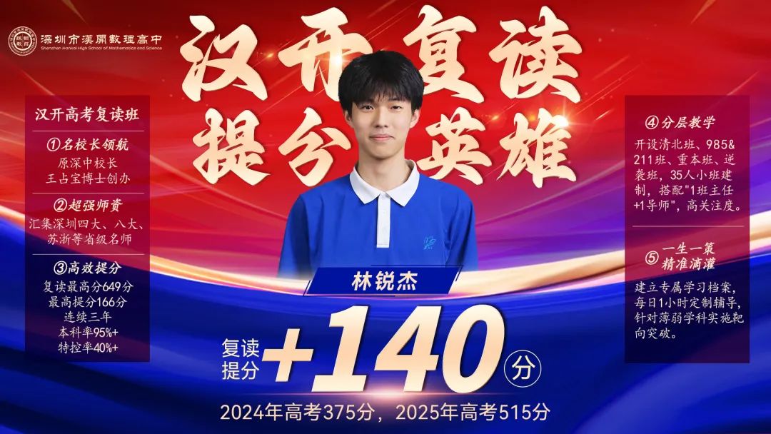 林*杰,从375分到515分,复读提分140分,汉开高考复读班,精准教学显成效!