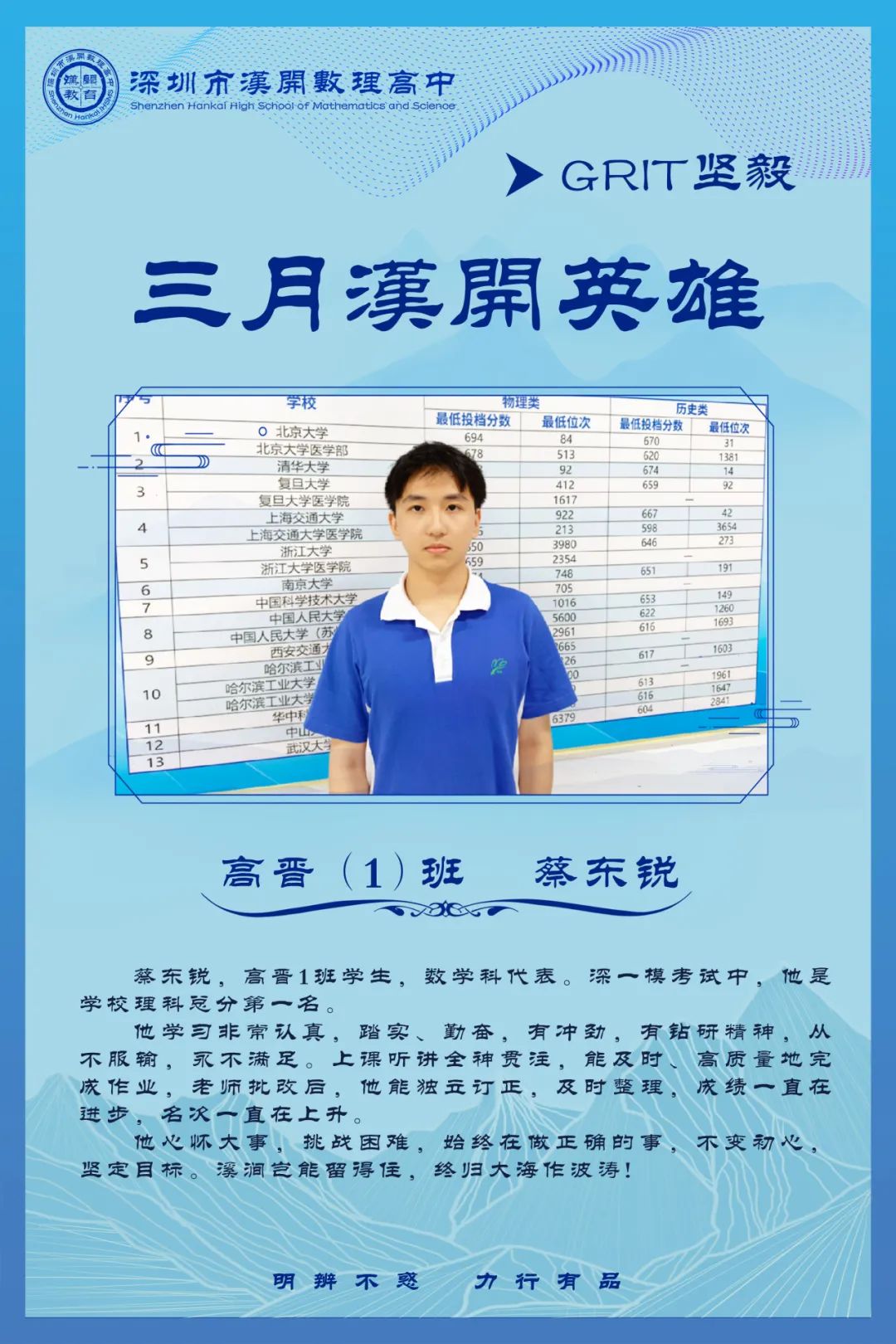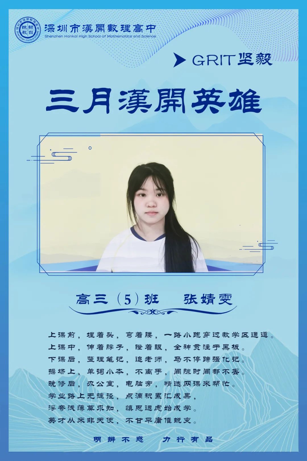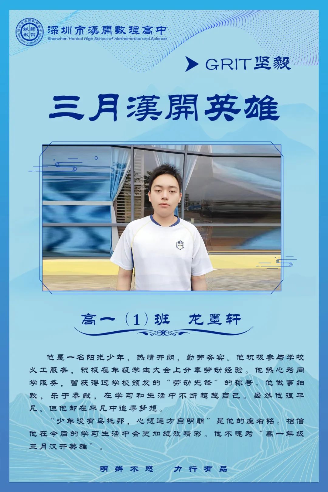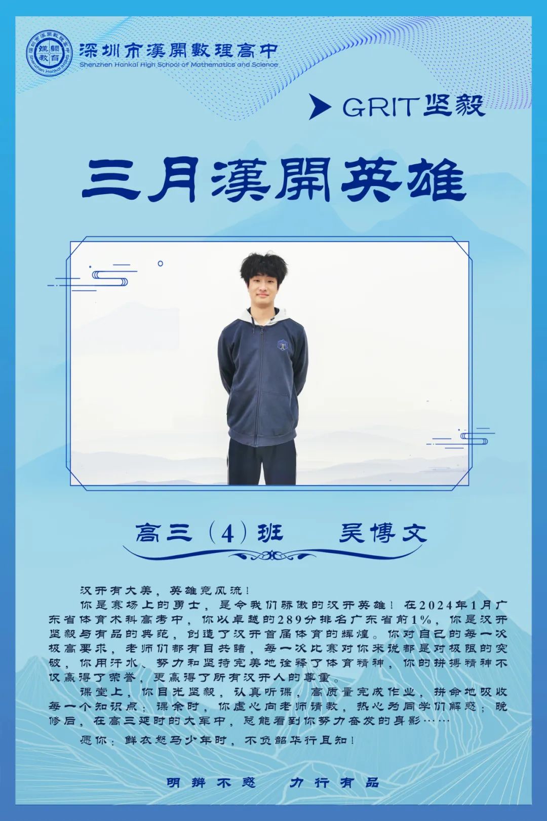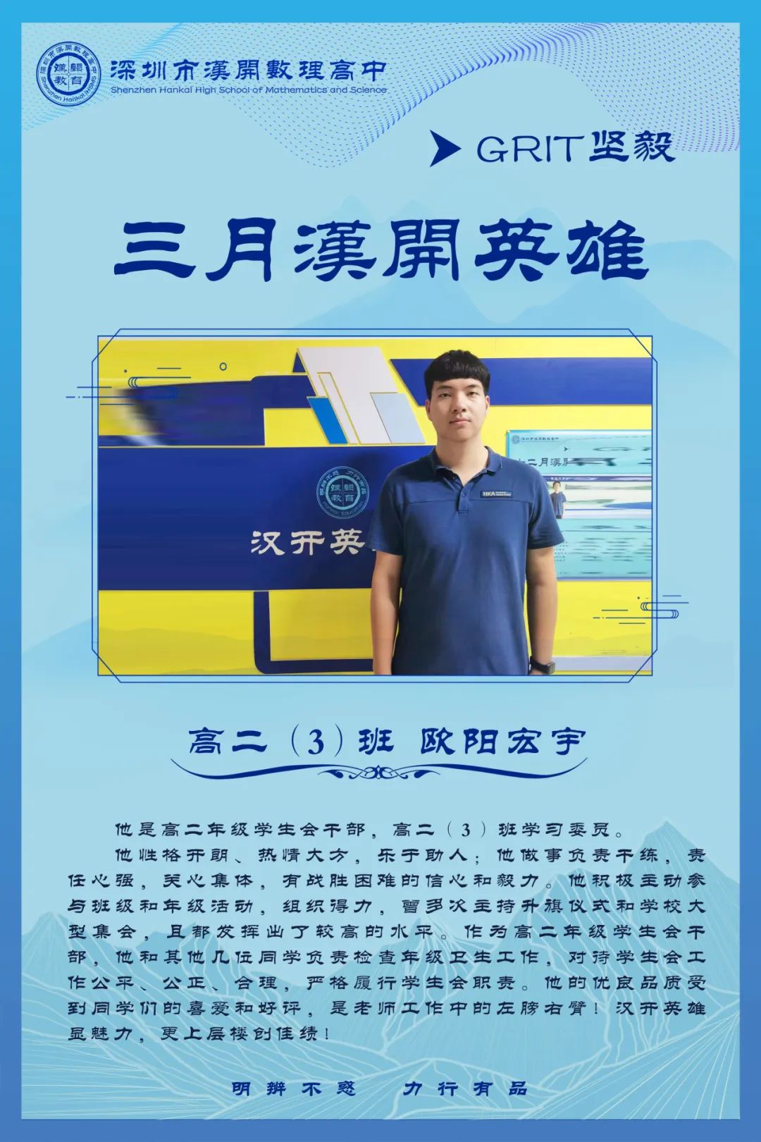 把该做的事做到最好,这就是真英雄的行为;坚持这种行为,并且把它养成习惯,这就是真英雄的人,这就是汉开人!