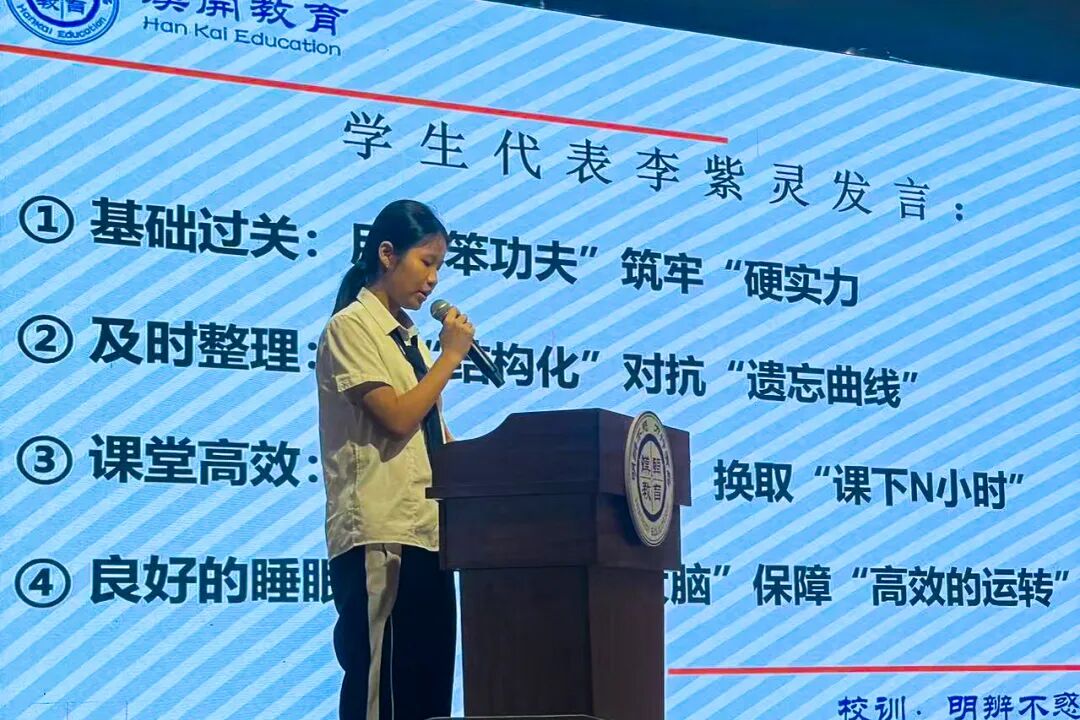 李紫灵同学以589分位居物理类榜首,她在分享中谈到:“基础过关,是用‘笨功夫’筑牢‘硬实力’。”她的数学145分、物理92分,正是对“把小事做到最好”这一汉开精神的践行。